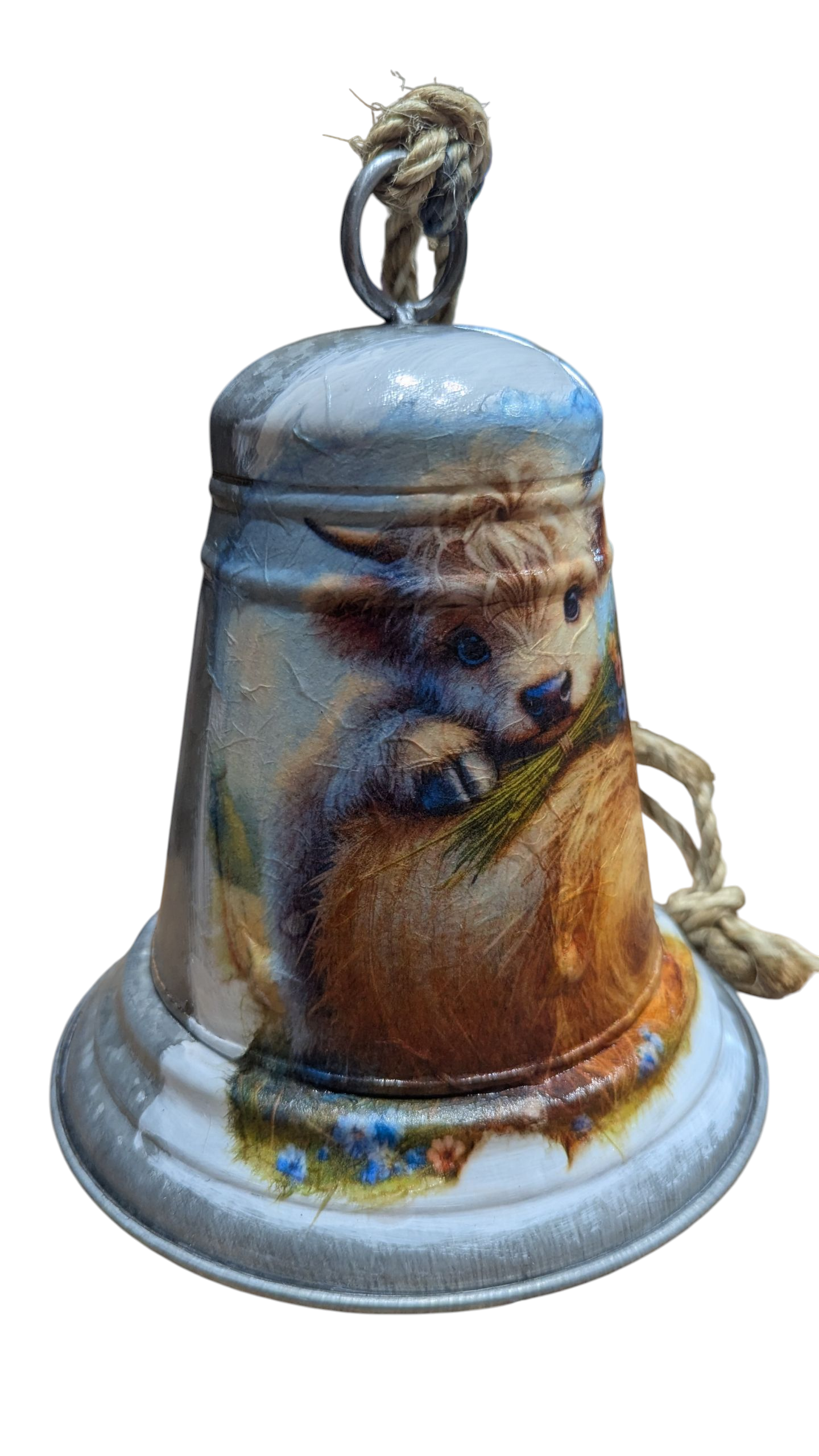 Baby Highland Cow on a Hay Bale Bell