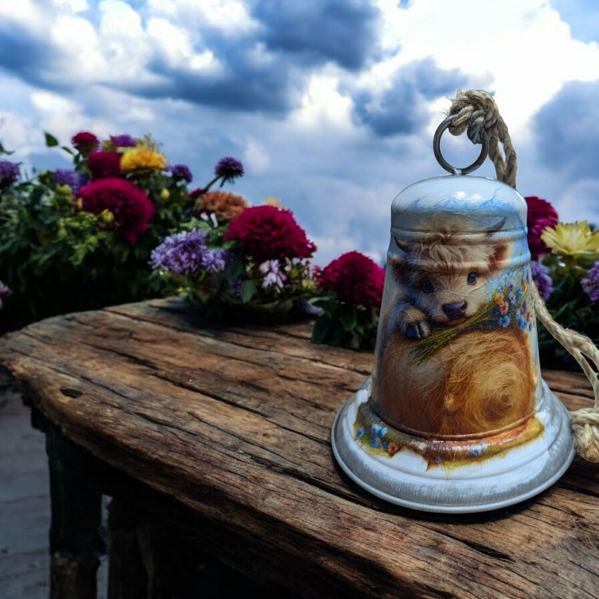 The Baby Highland Cow on a Hay Bale Bell is a must-have for any cow enthusiast. Crafted from quality materials, this adorable figurine features a charming Highland Cow on a Hay Bale. Display it proudly in your home or office and add a touch of countryside charm to your decor.