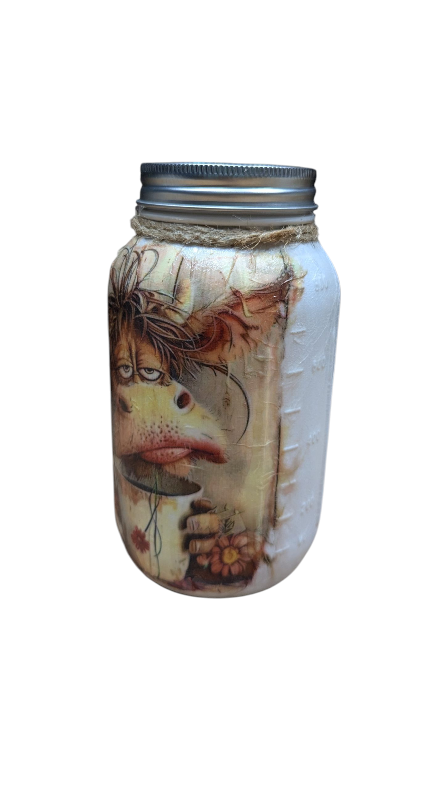 Morning Coffee Cow Mason Jar: syrup pump, tissue dispenser, tip jar, stir stick/straw holder, or canister