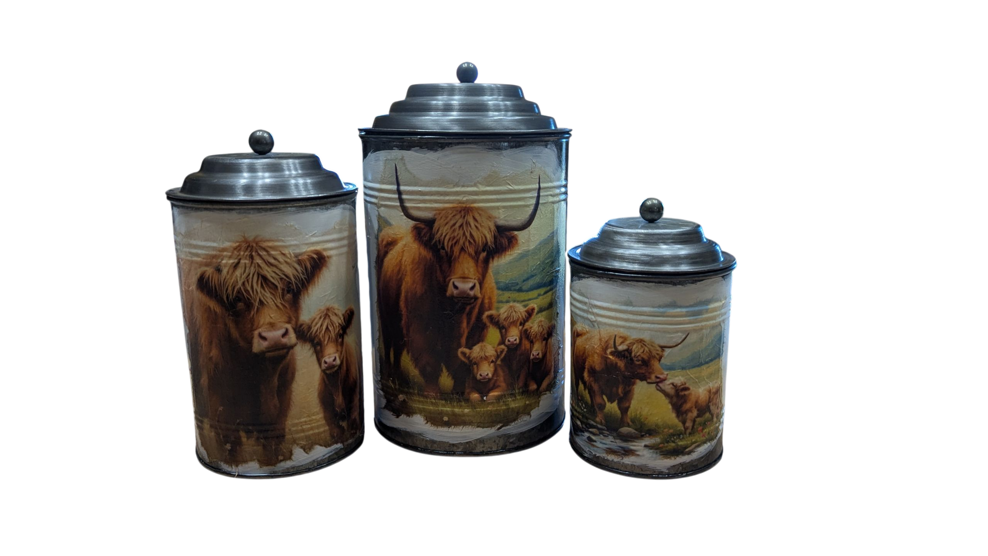 Beautiful Highland Cow Canister Set. This is a must have for any Highland Cow lover!
