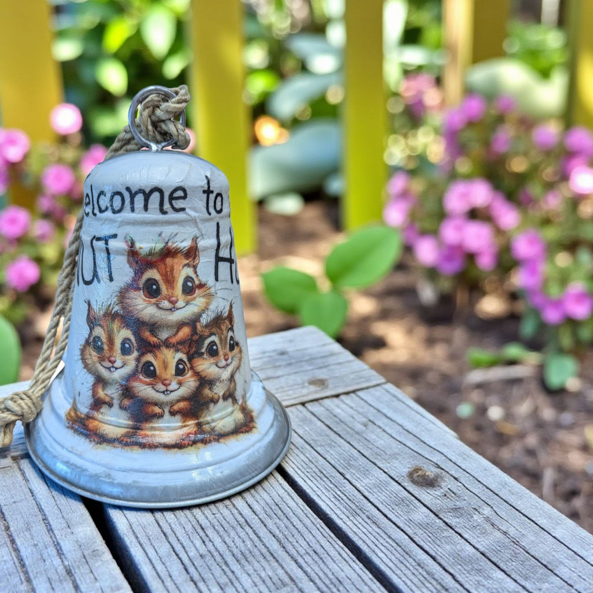 Welcome to the Nut Hut Whimsical Squirrel Decorative Bell